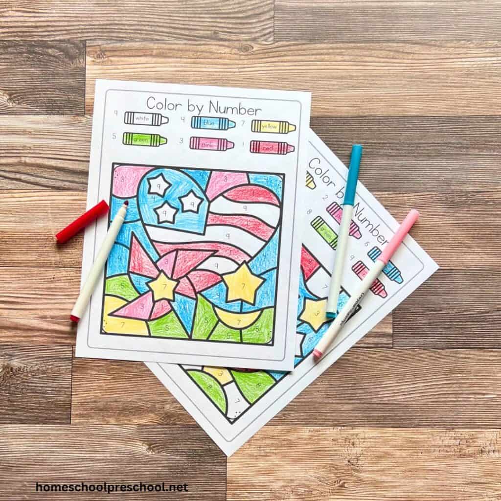 Absolutely! Grasping crayons and coloring within the lines in 4th of July color-by-number activities strengthens the small muscles in preschoolers’ hands, improving their fine motor skills and dexterity. This lays the foundation for important tasks like writing and manipulating objects in the future.