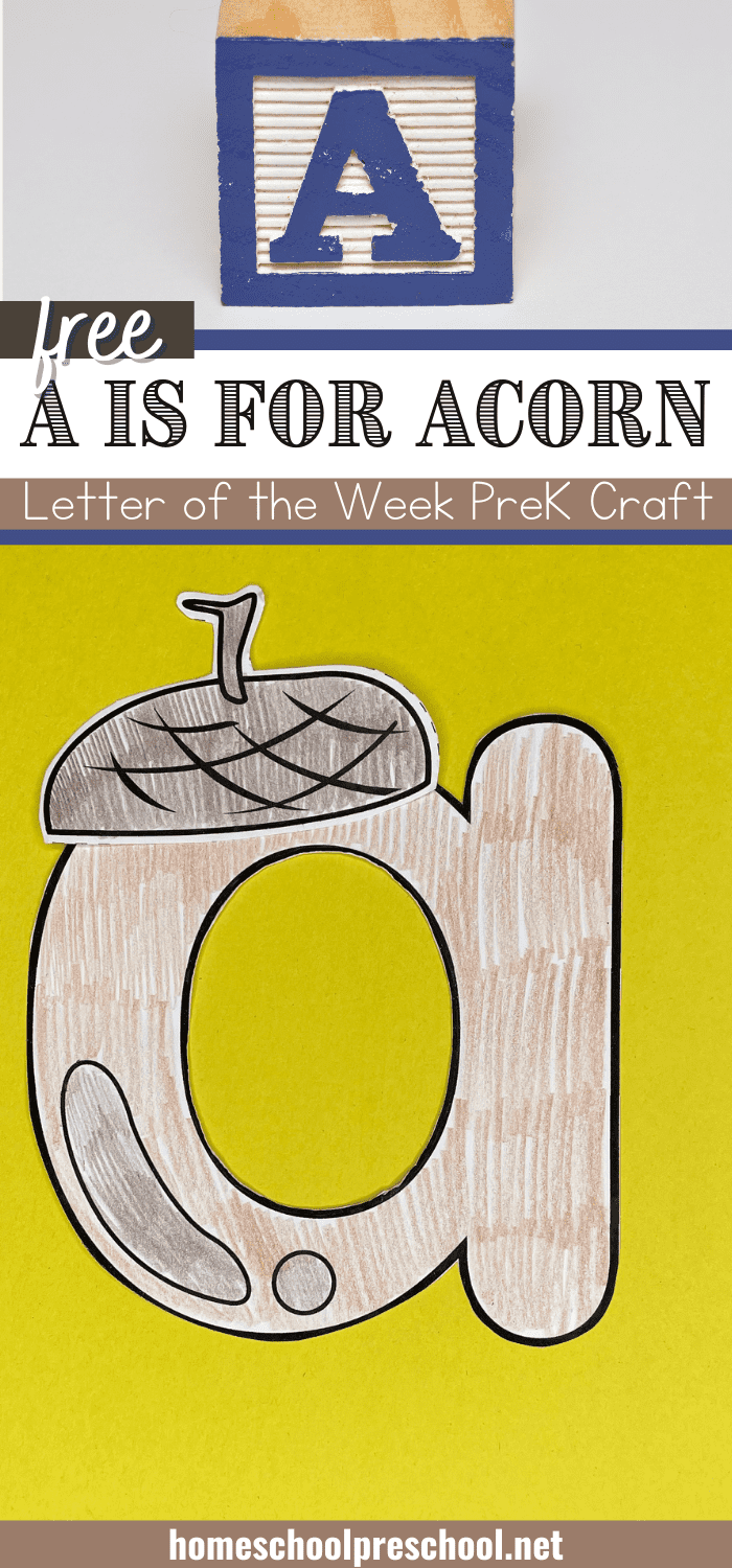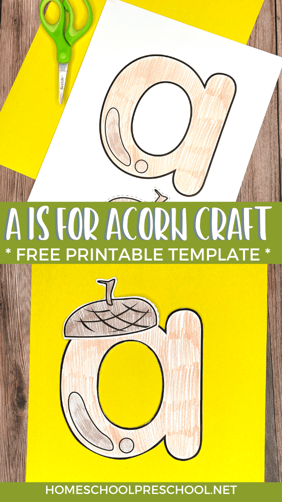 Add this A is for Acorn craft to your fall and/or Letter A preschool activities. It’s so simple with the free printable acorn template.