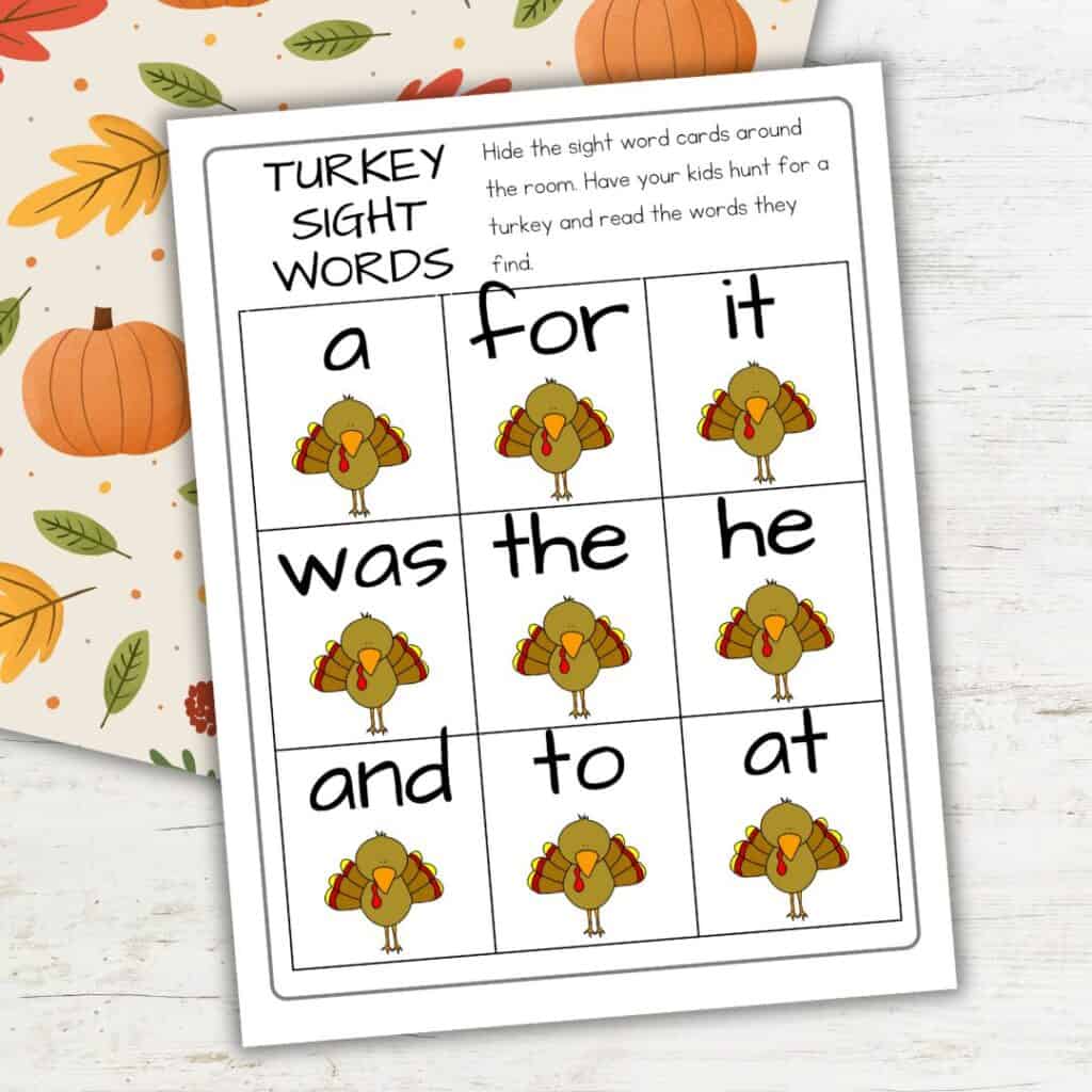 Hide the sight word cards around the room and let your preschoolers go on a word hunt! As they find each turkey card, they’ll read the word aloud, reinforcing early reading skills in a playful, active way.