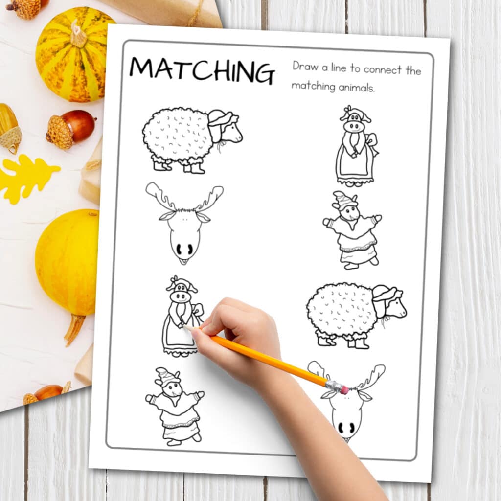 Just like Mr. Moose gathers his woodland friends for dinner, kids will enjoy matching the animals in this printable page. This activity supports visual discrimination and memory development while reinforcing characters from the story.