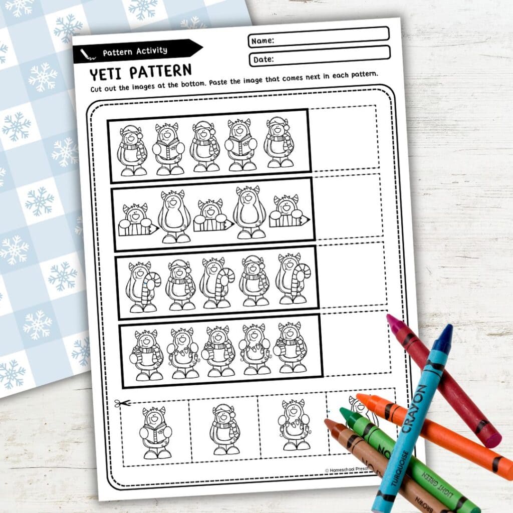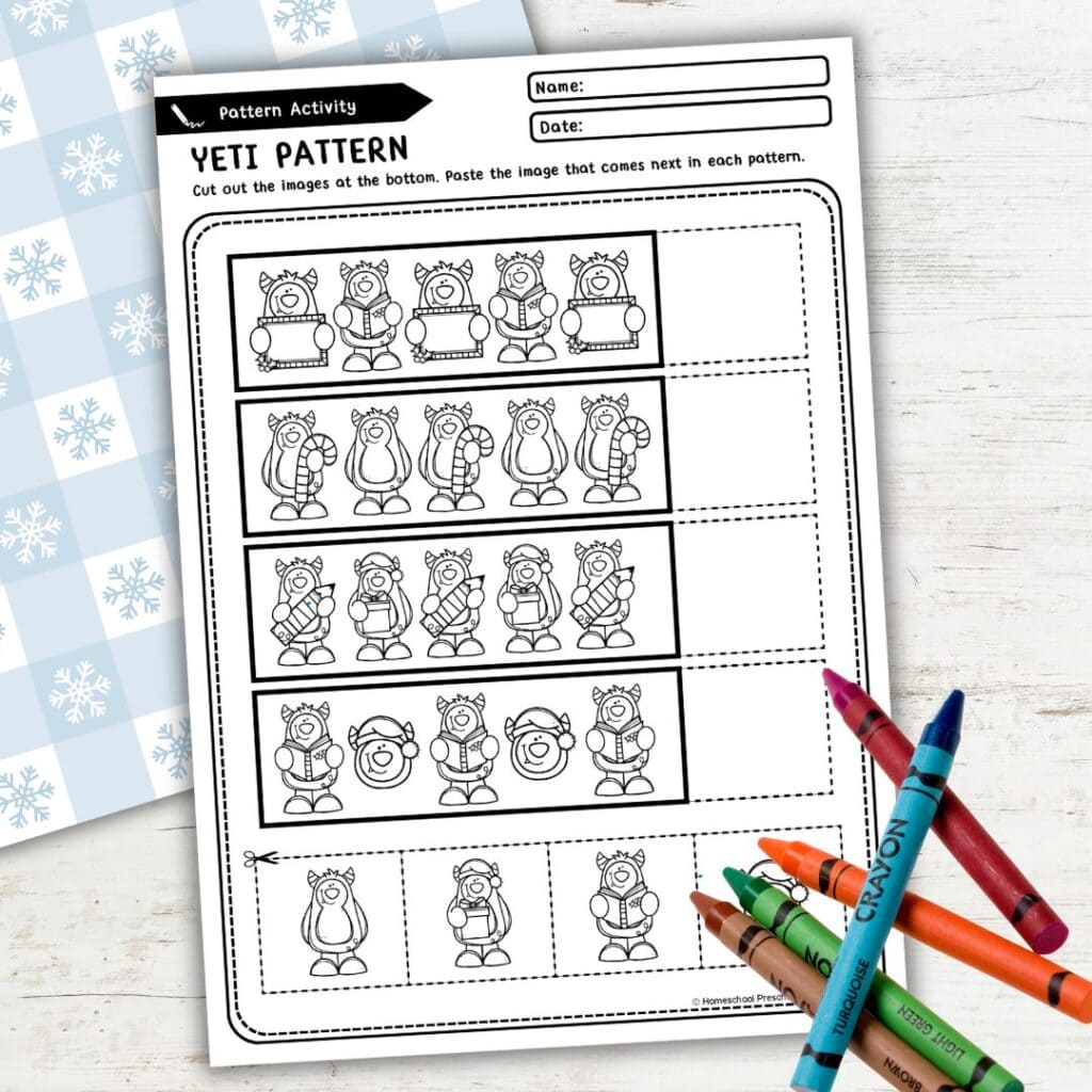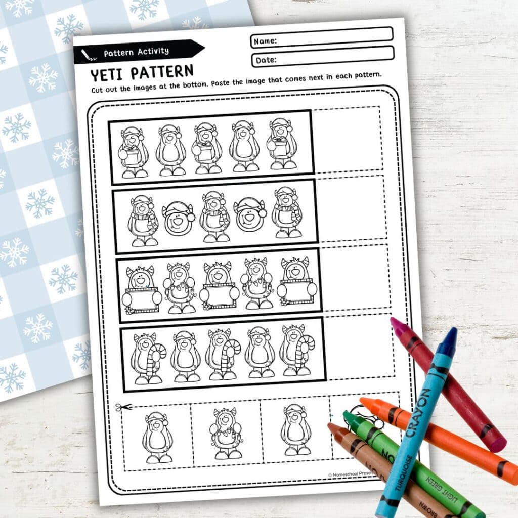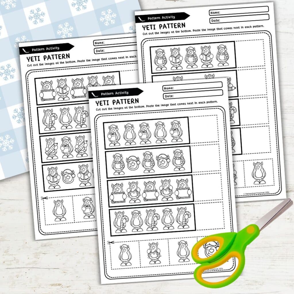 This worksheet packet is easy to use at home or in the classroom. Your preschooler will cut and paste festive yetis to complete each pattern. With fun visuals and interactive activities, these worksheets encourage early math skills while keeping kids focused.