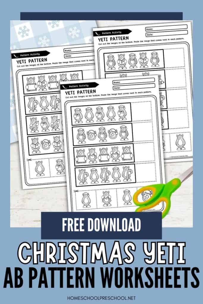 This Christmas math activity for preschoolers features adorable yetis to help children complete ABAB patterns. It’s designed to build foundational preschool skills.