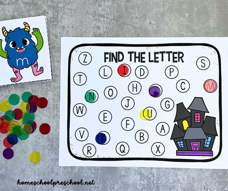 This letter recognition game is such a fun Halloween printable that combines letter recognition with visual discrimination activities, so your child can learn the alphabet in a fun and engaging way.