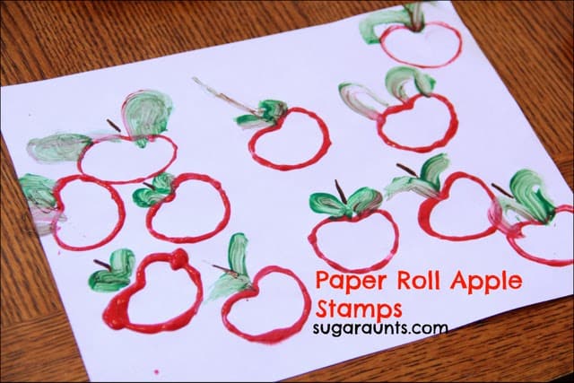 Apple Stamps: Use halved apples as stamps for creating artwork. Dip the cut side of the apple in washable paint and press it onto paper to create apple-shaped prints. Encourage children to experiment with different colors and patterns. This activity promotes creativity and fine motor skills.