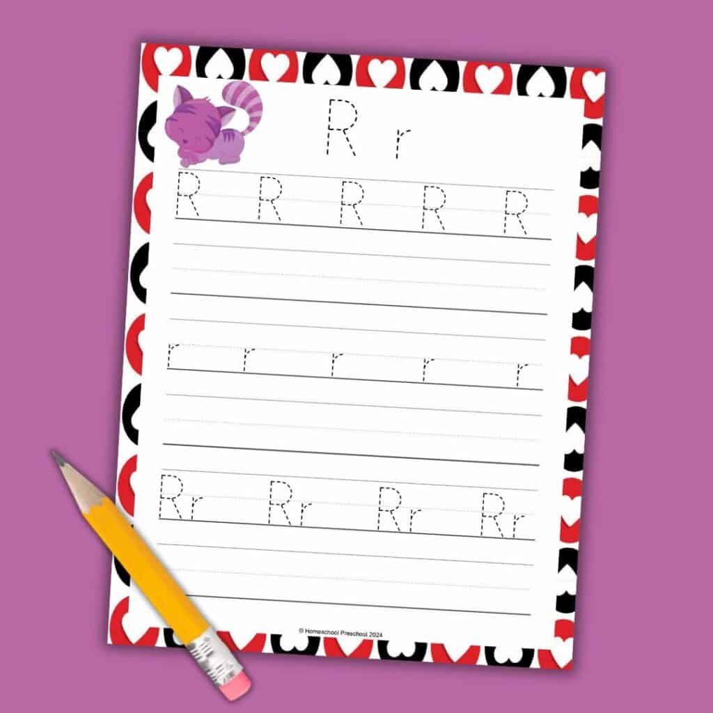 Lowercase Journeys: Help refine letter recognition and writing with lowercase practice sheets. Expect appearances from the mischievous Cheshire Cat and the ever-late White Rabbit!