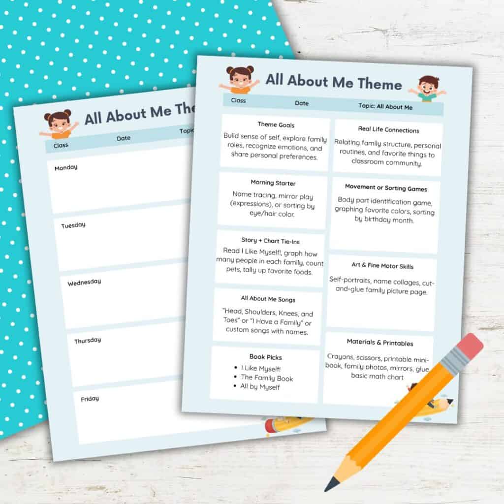 All About Me Preschool Theme Planner