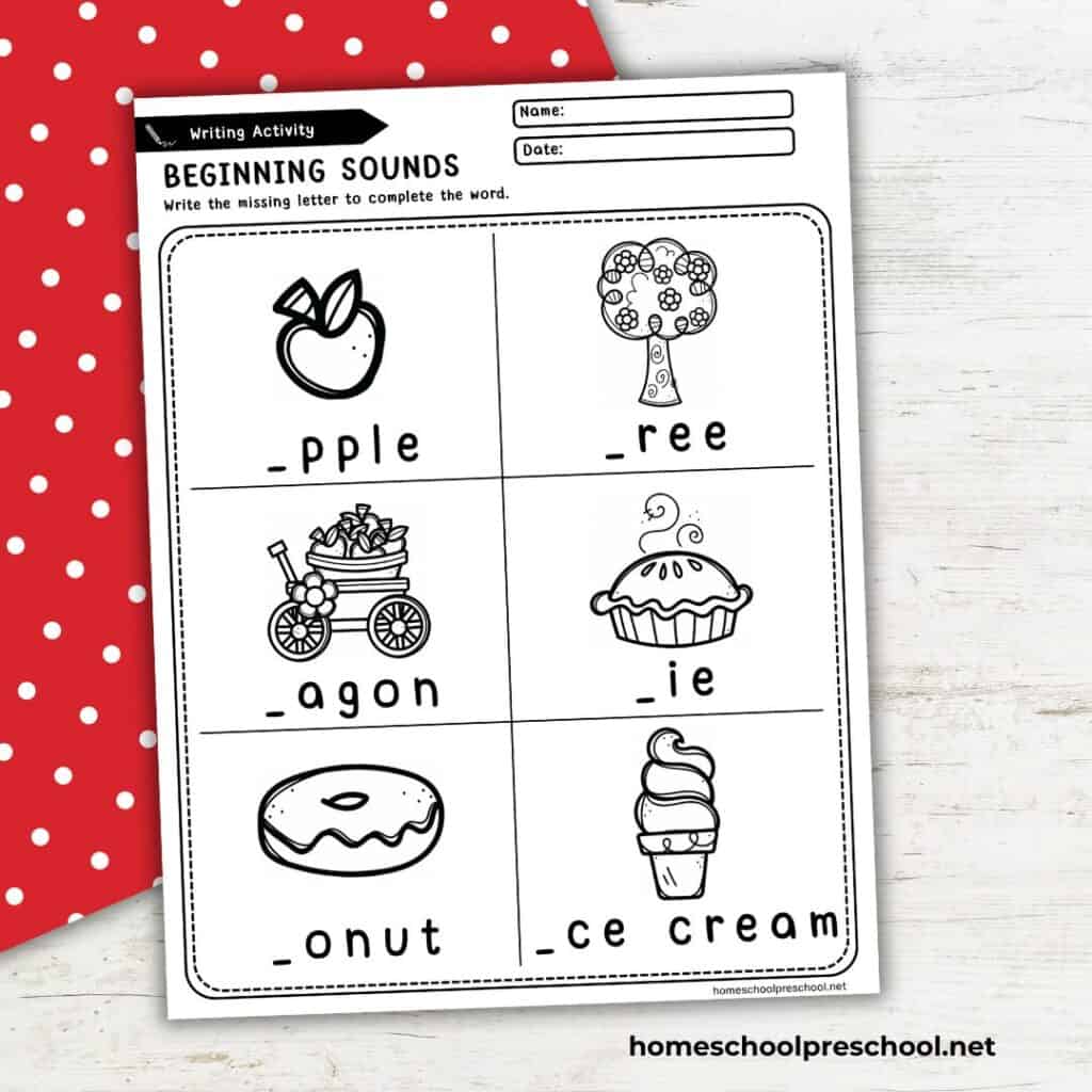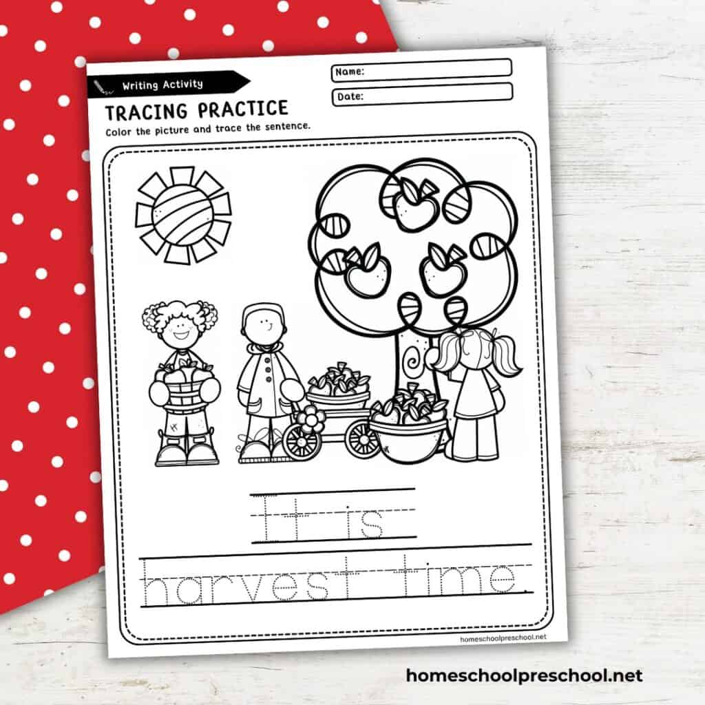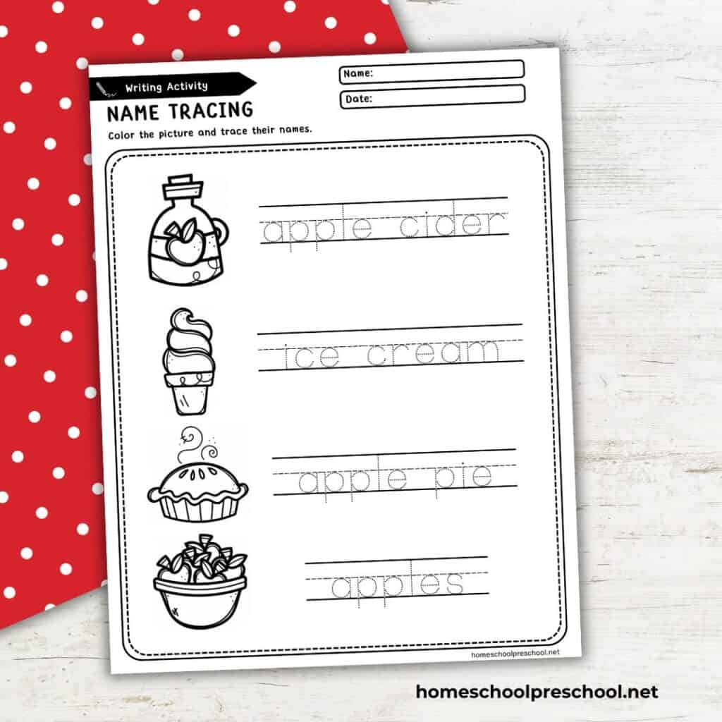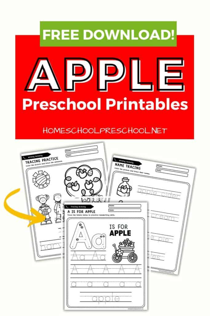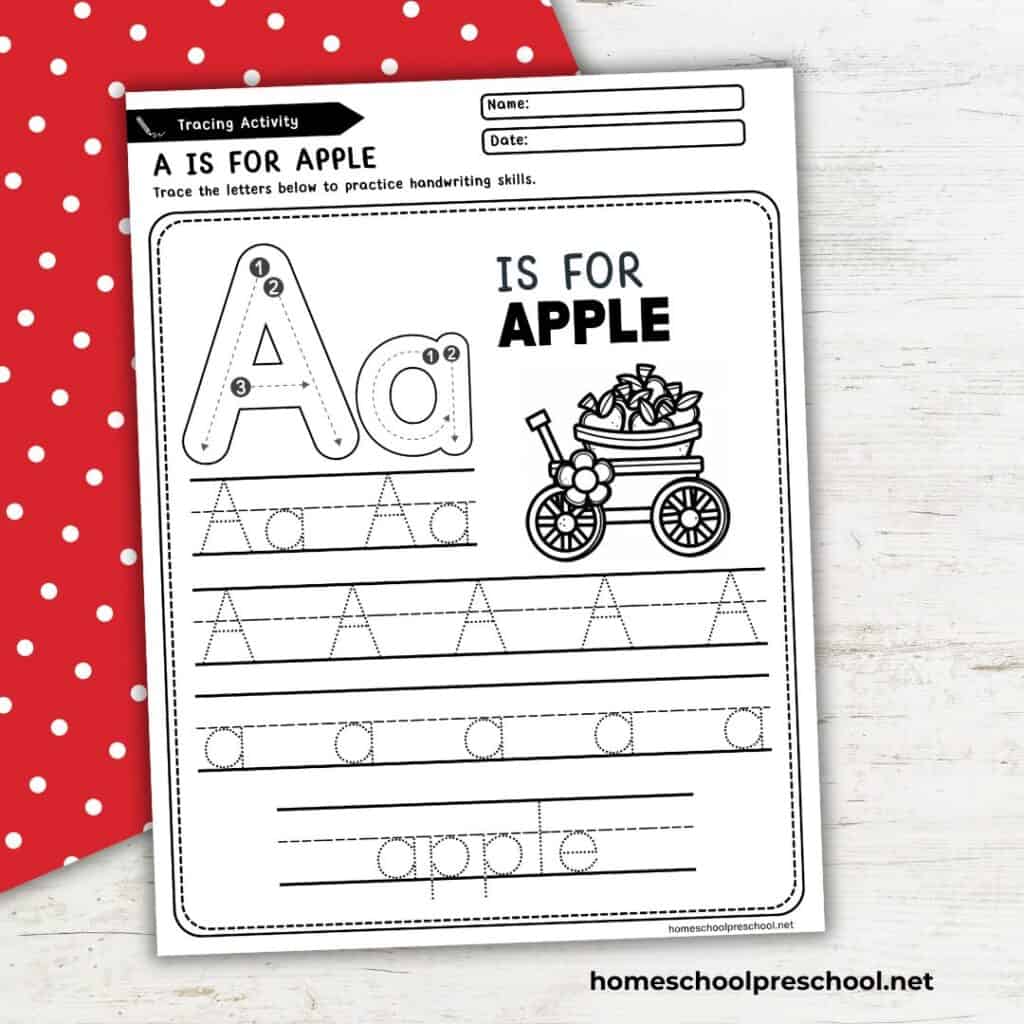 These free preschool printables are a fun and simple way to help preschool and kindergarten kids practice early literacy skills. With a sweet apple theme, they make learning feel like play! Children will work on letter recognition, handwriting, beginning sounds, and vocabulary while coloring and tracing.