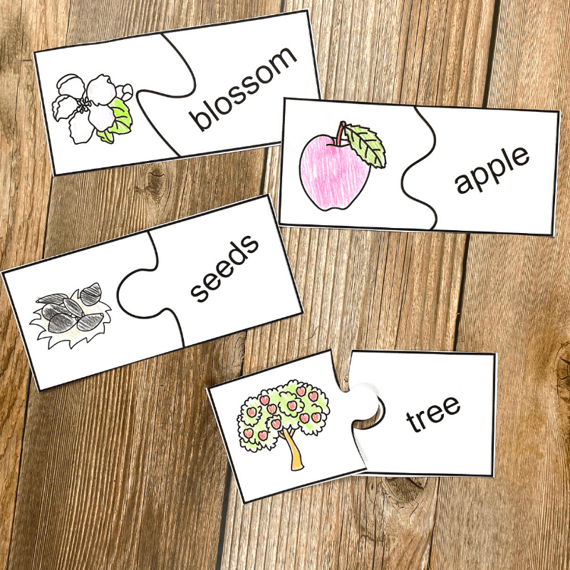 This is a great time to talk about the vocabulary associated with the life cycle of an apple.