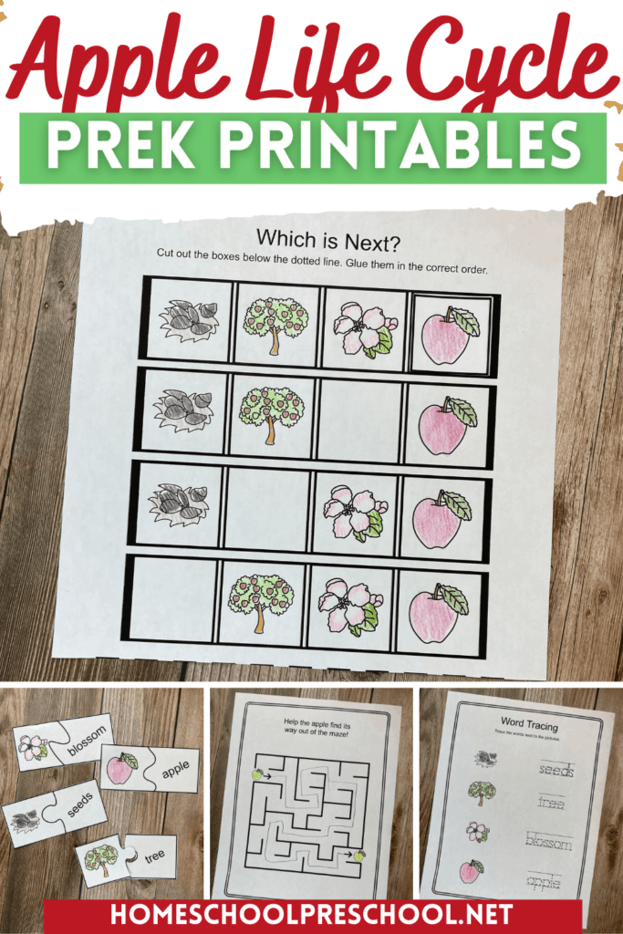These free preschool printables are a great place to start your life cycle studies, but if you want to teach a whole unit check out my apple life cycle unit.