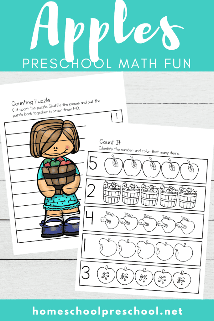 These free math worksheets are the perfect addition to your autumn apple preschool activities. Perfect for teaching or reviewing math concepts with your preschoolers.