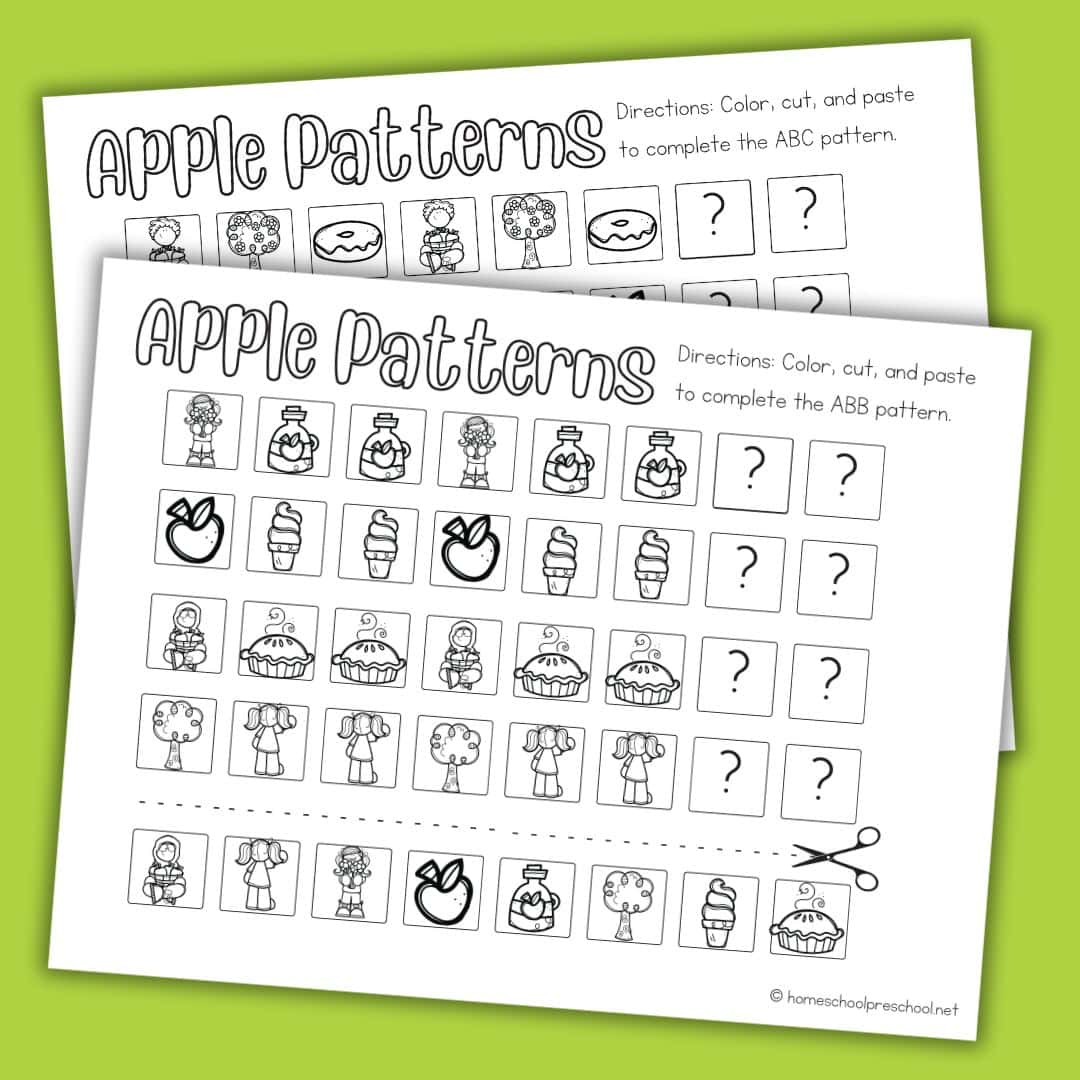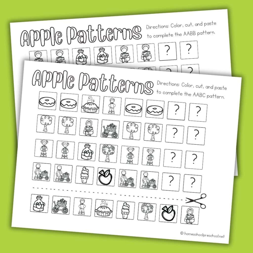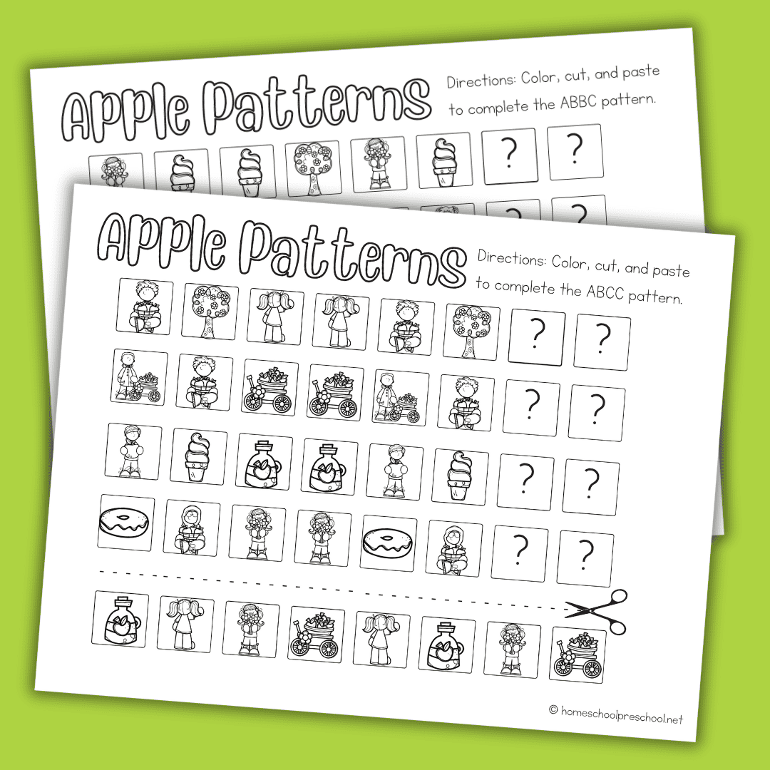 Once your preschooler is familiar with the pattern concept and has a suitable workspace, they can begin completing the fun apple-themed activities.