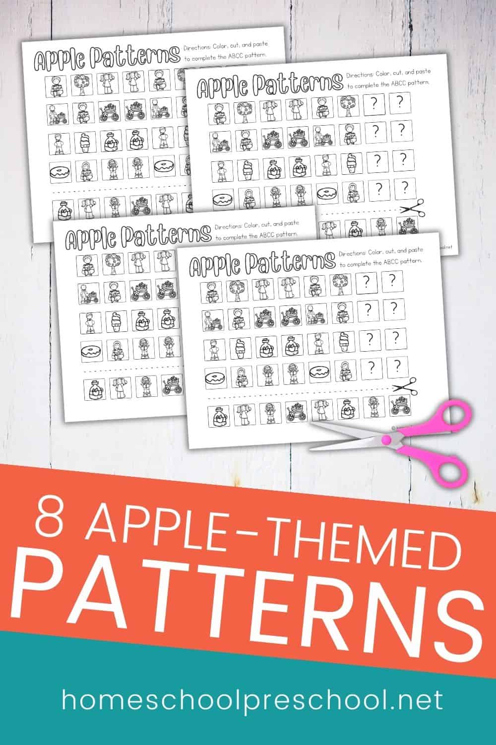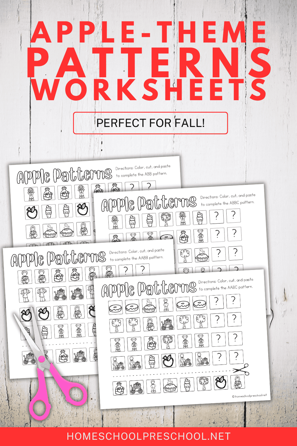 Ready to get an apple-sized dose of patterning fun? Scroll down and grab your free printable worksheets!