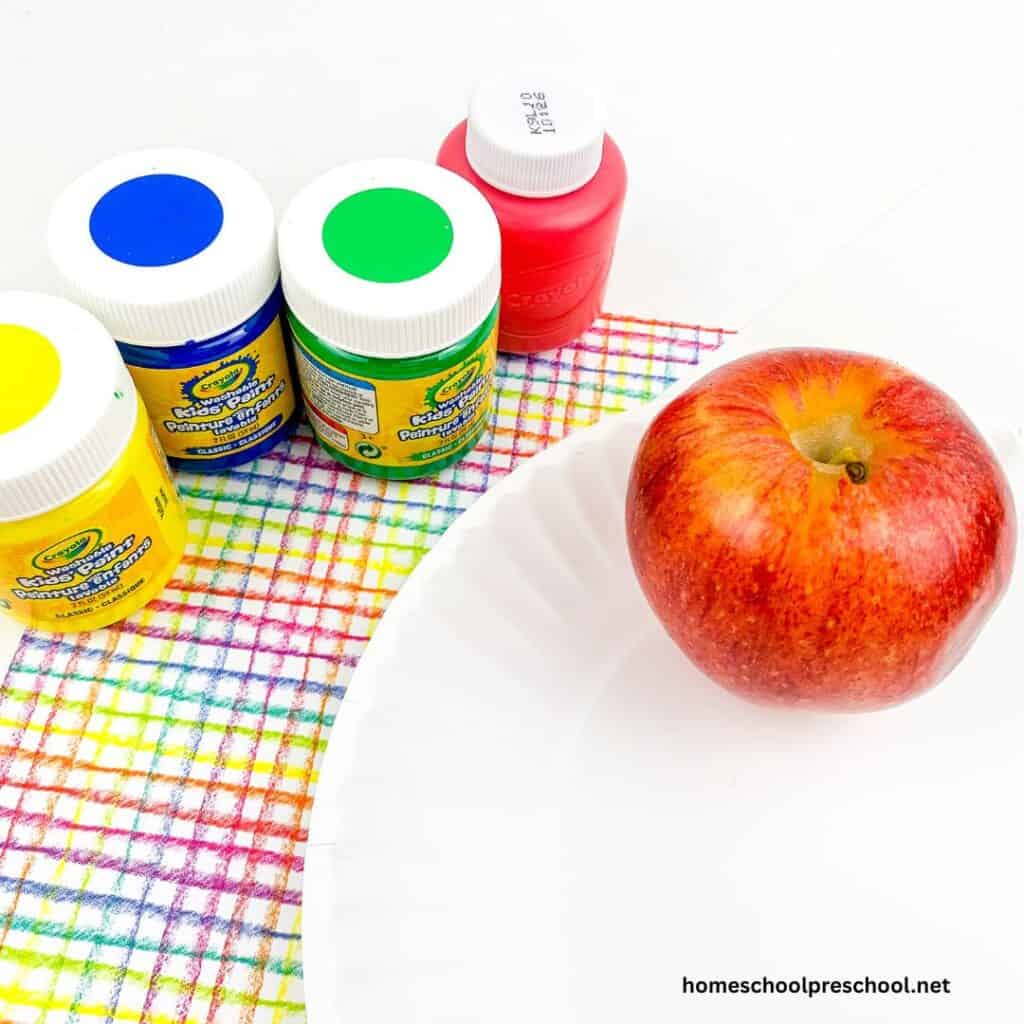 It’s a great activity to do during your preschool apple theme or anytime you’re looking for a fun fall project. You only need a few basic supplies to get started—most of which you probably already have at home!