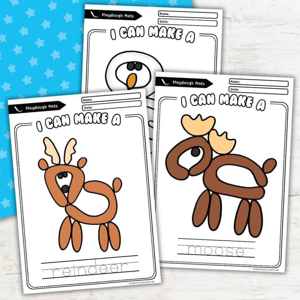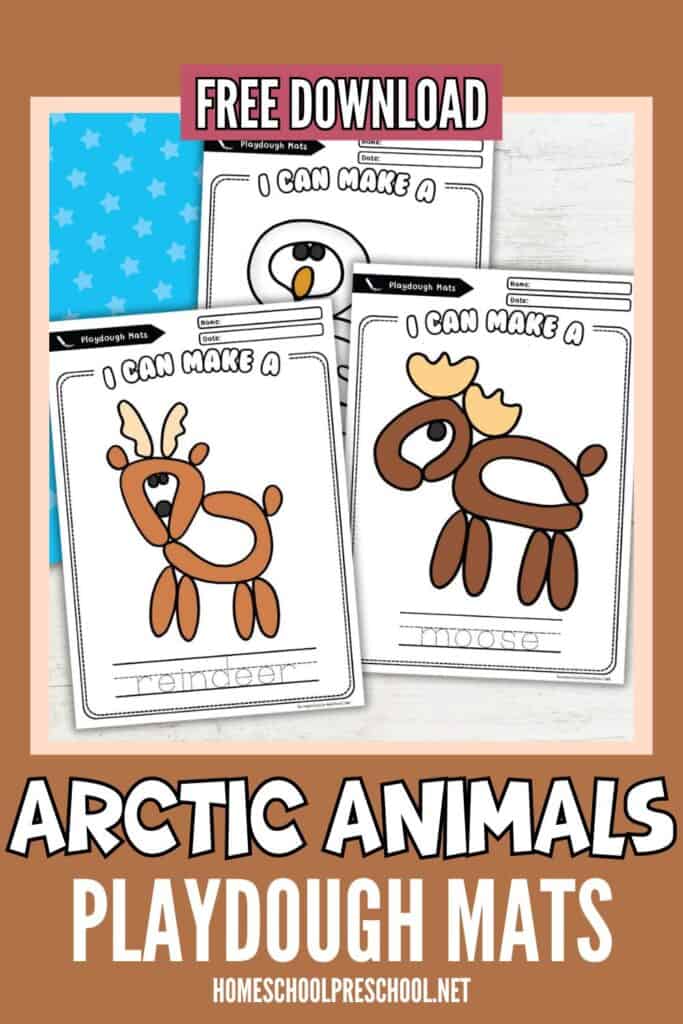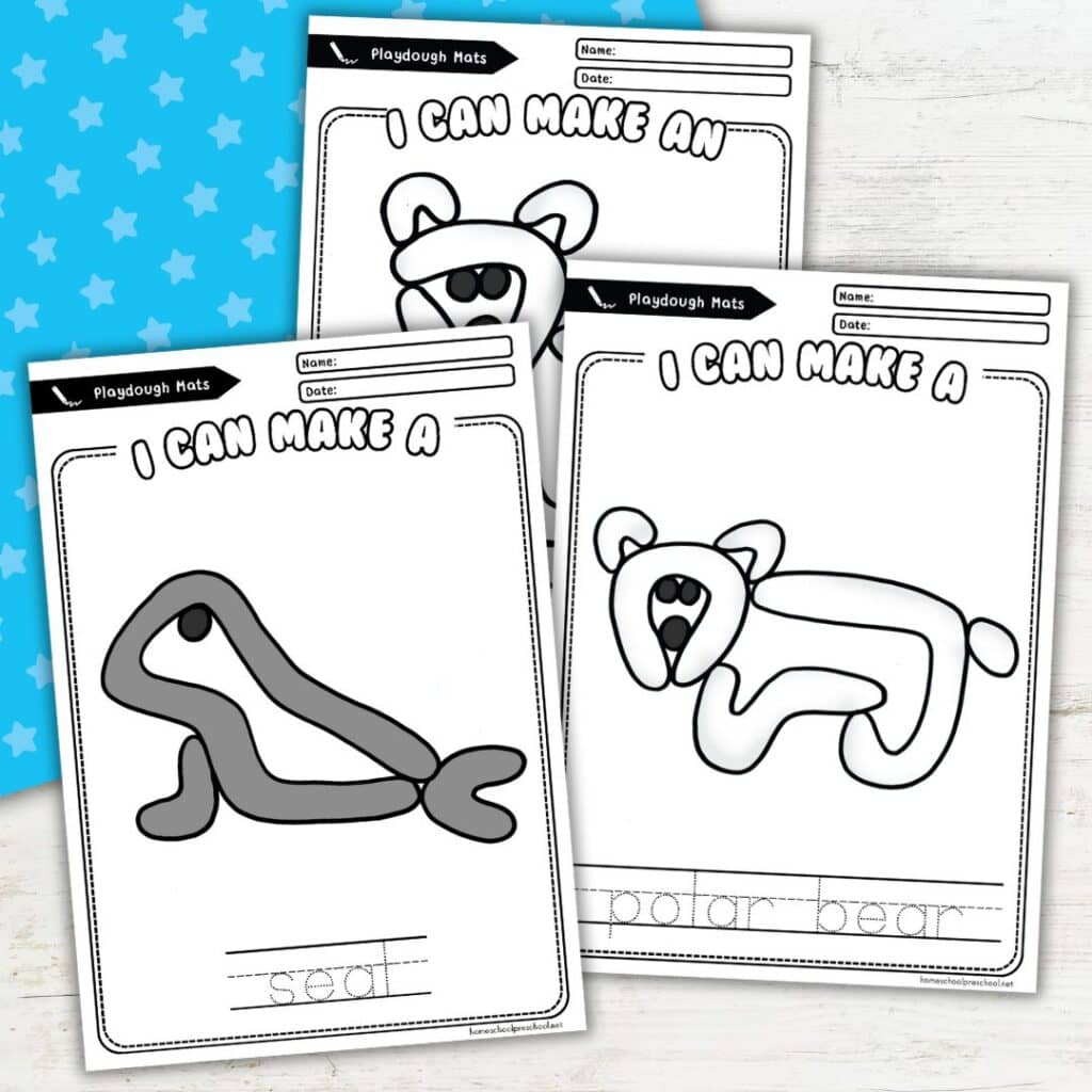 - Playdough mats featuring a variety of Arctic animals, including a polar bear, seal, moose, snow owl, deer, and more.