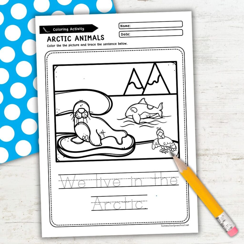 - Color and Trace Pages: Foster creativity and handwriting practice by coloring Arctic animals and tracing fun sentences.