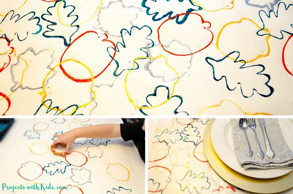 Process art is perfect for preschoolers. There is no right or wrong. Turn this cookie cutter process art activity into fall placemats. Your kids will be so proud to see their artwork on display at dinner time. Projects with Kids