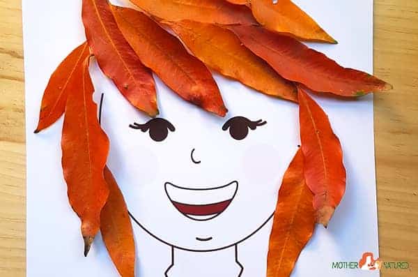 Print out the free boy and girl head templates, and have your child decorate them with nature finds. The resulting nature craft collages are amazingly unique. Mother Natured