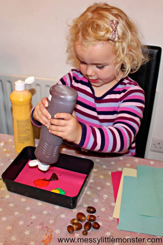 Have your kids ever painted with acorns? See what they can create with this fun acorn process art activity. Messy Little Monster