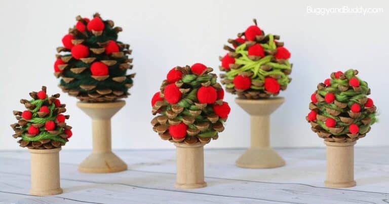 If you’ve got access to some pinecones, your kids can collect a few and use this tutorial to turn them into yarn-wrapped pinecone apple trees. Buggy and Buddy