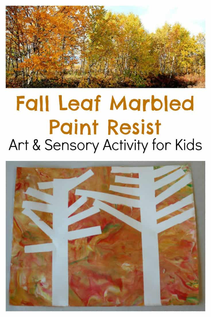 Fall Trees Marbled Paint Resist Art Activity for Kids!
