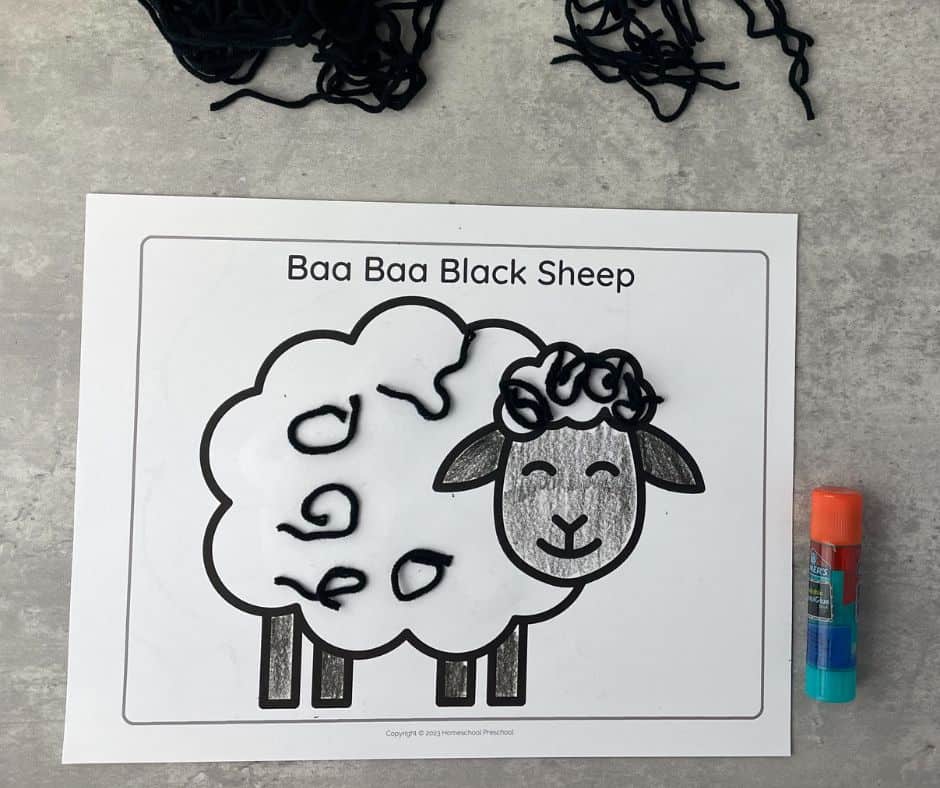 Firstly, scroll down to the bottom of this post and print out our free Baa Baa Black Sheep template. This will serve as the base for your craft.