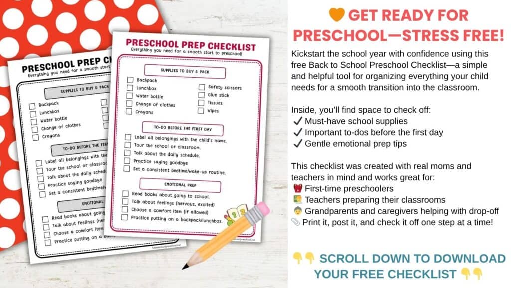 Ready to feel more prepared and less frazzled? Download your Back to School Preschool Checklist below—it’s completely free and designed to walk you through every step of getting your little one ready for preschool.