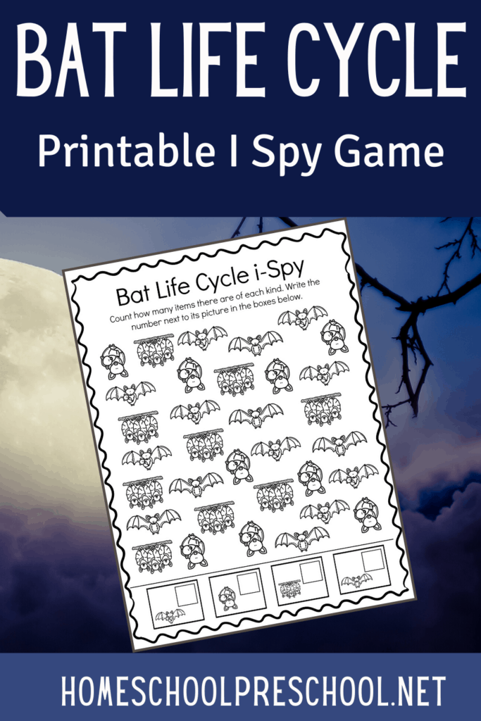 During October, you may choose to teach your preschoolers about bats. As you get closer to Halloween, you may be studying these nocturnal animals. If so, add this I Spy game to your activities.