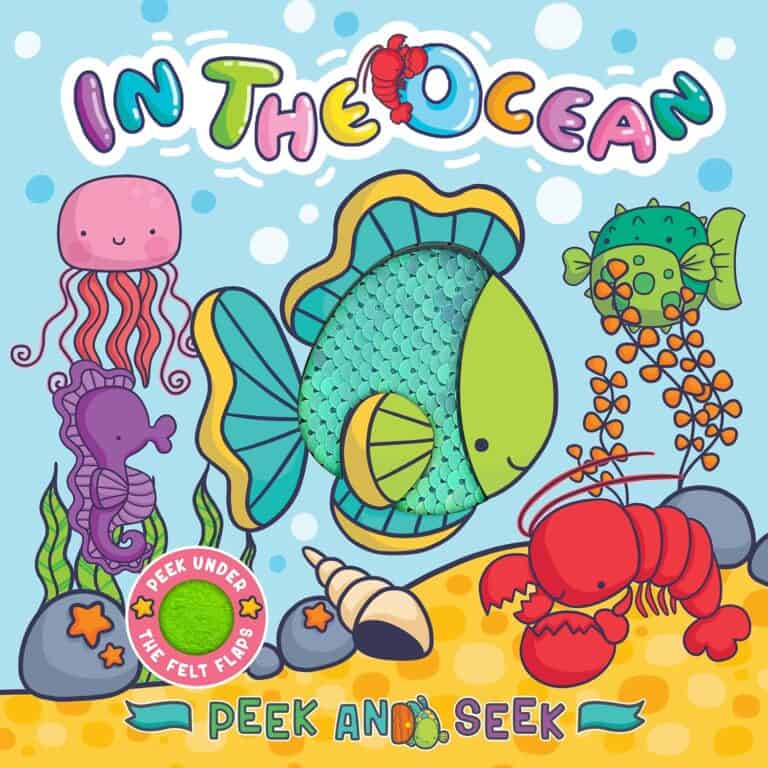 “In the Ocean” is an interactive board book where Mommy Fish searches for Little Fish in the deep sea. Readers help by lifting felt flaps to find Little Fish hiding behind them. The book features colorful illustrations of sea creatures like fish, lobster, and jellyfish. With touch-and-feel elements and felt flaps, toddlers can engage their senses while learning about ocean life. Mommy Fish also teaches an important lesson about staying close and safe. Dive into this sensory adventure with “In the Ocean”!