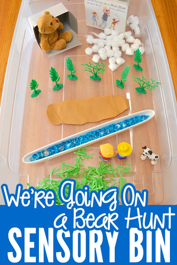 With a handful of supplies you likely have on hand already, you and your preschoolers can set up a fun We're Going on a Bear Hunt sensory tray to reenact the story.