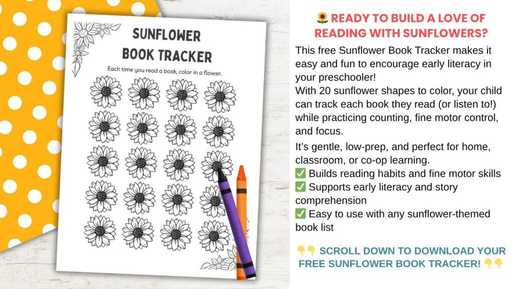Looking for printables to go along with your reading? Be sure to grab the free sunflower reading tracker below!