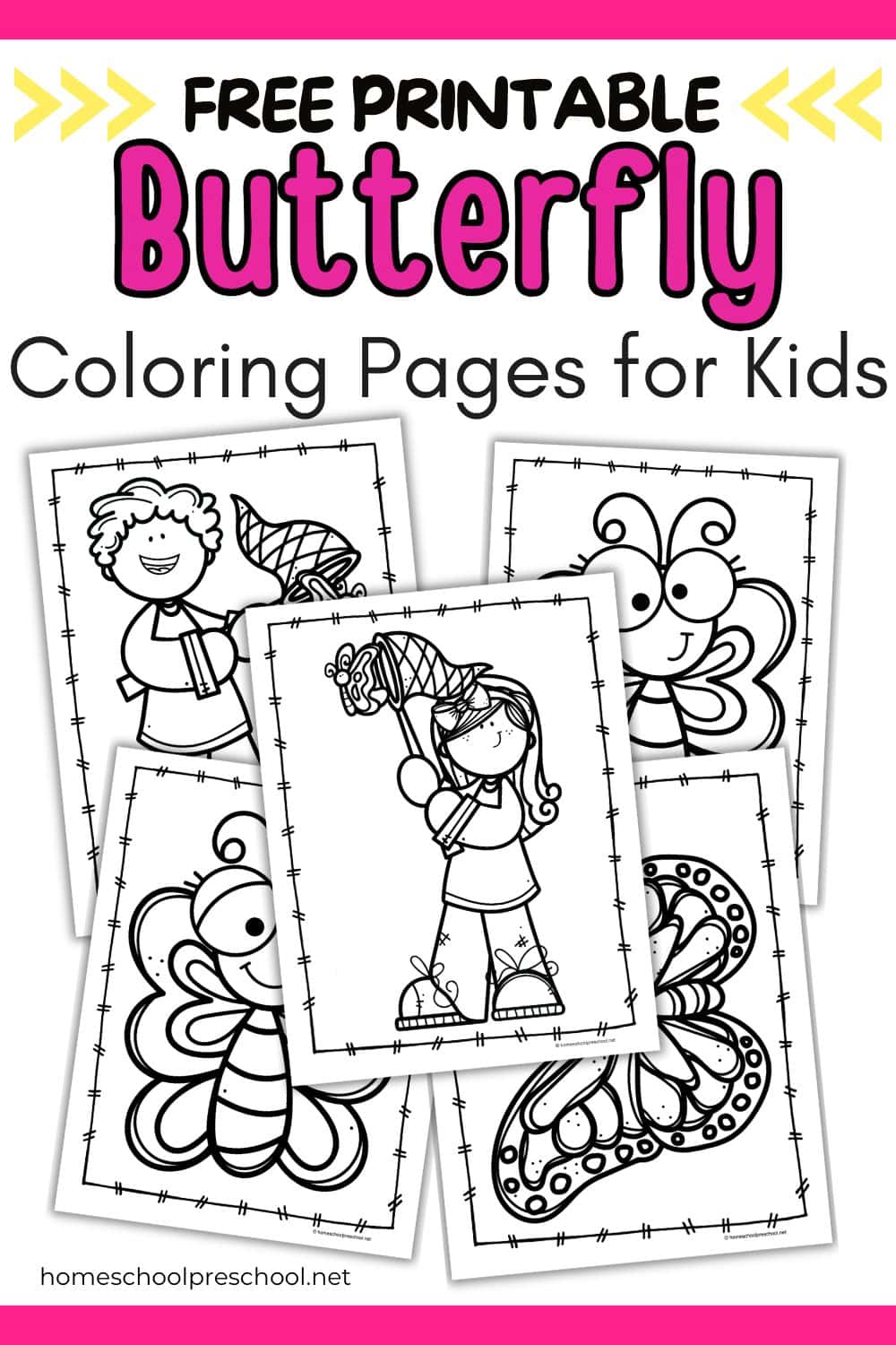 With simple butterfly graphics on each page, your kids will love each one included in this pack. The best part is that you can download and print these coloring pages for free!