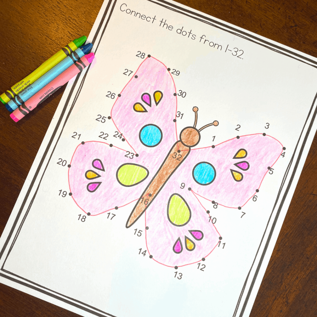 Plus, kids can color the worksheets when they’re done connecting the dots.
