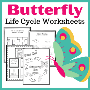 This spring and summer, plan to spend time teaching your preschoolers about butterflies. This activity pack will introduce kids to butterflies by focusing on the four stages of the butterfly’s life cycle.