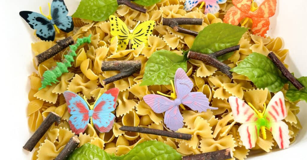 A butterfly life cycle sensory bin is an exciting way to engage preschoolers in scientific learning.
