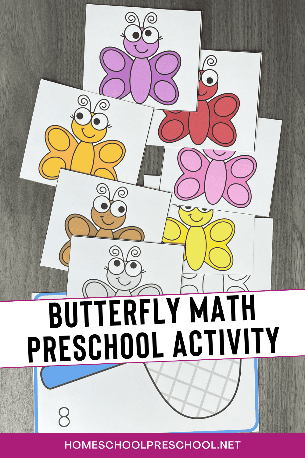 To begin, print out the cards with the numbered butterfly net and accompanying colorful butterflies.