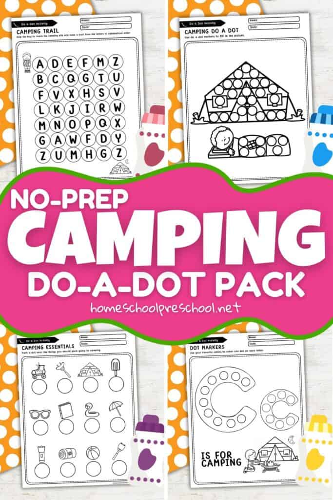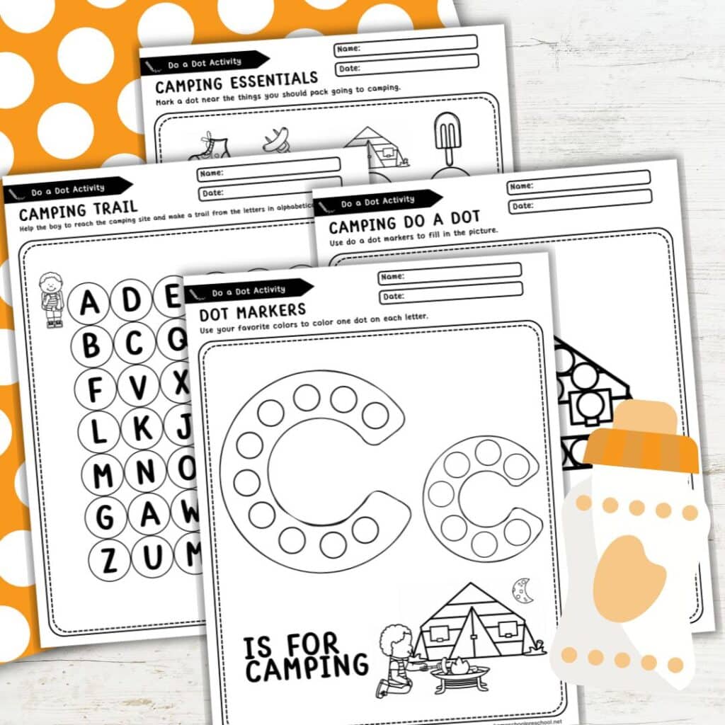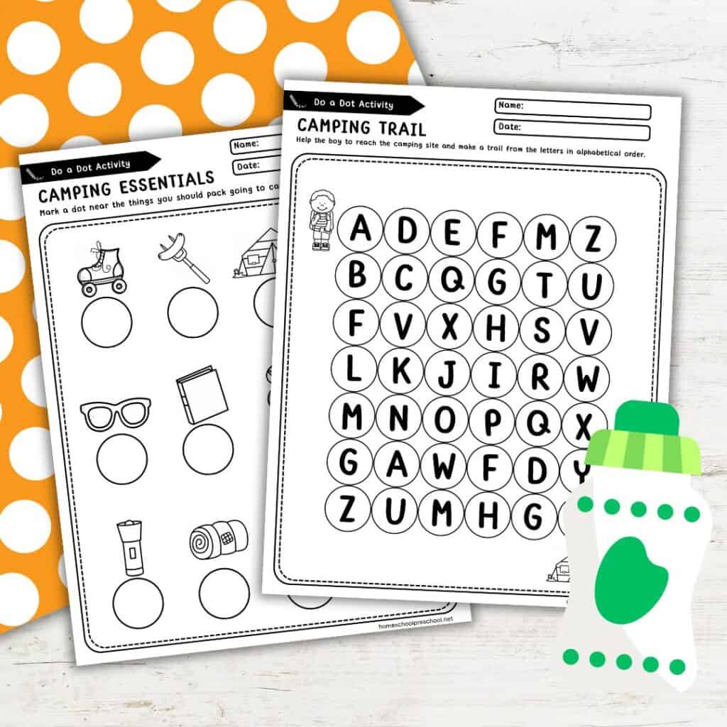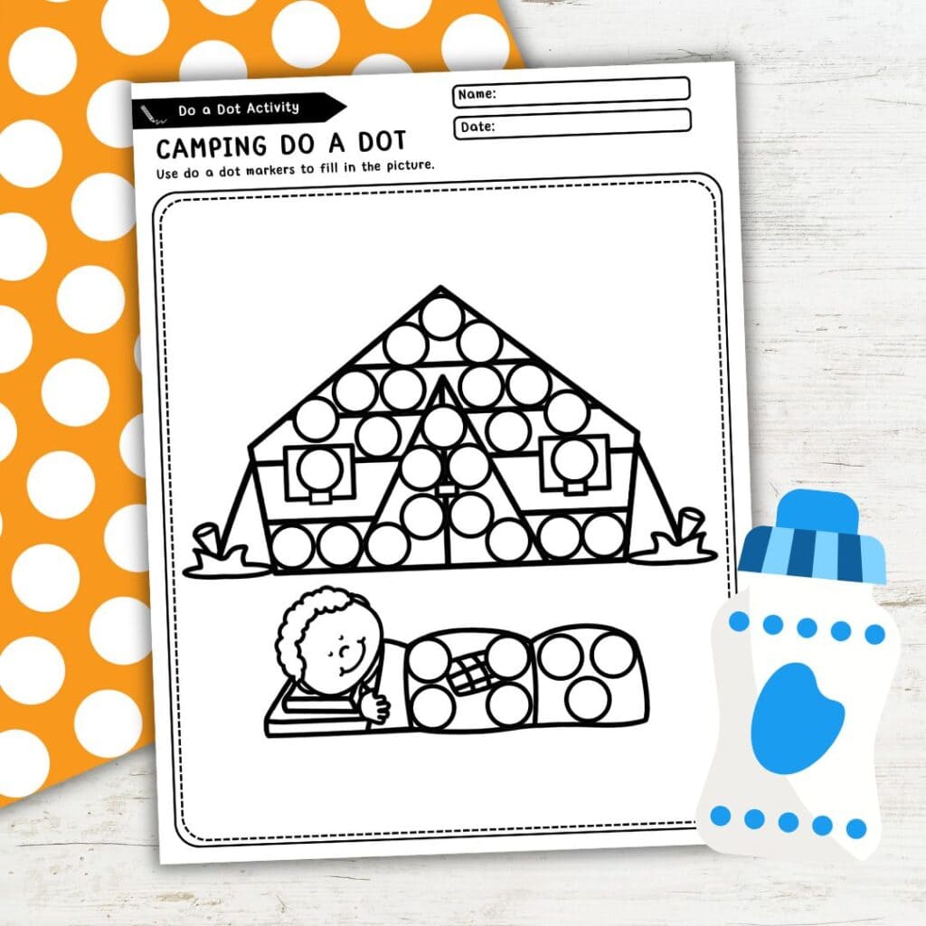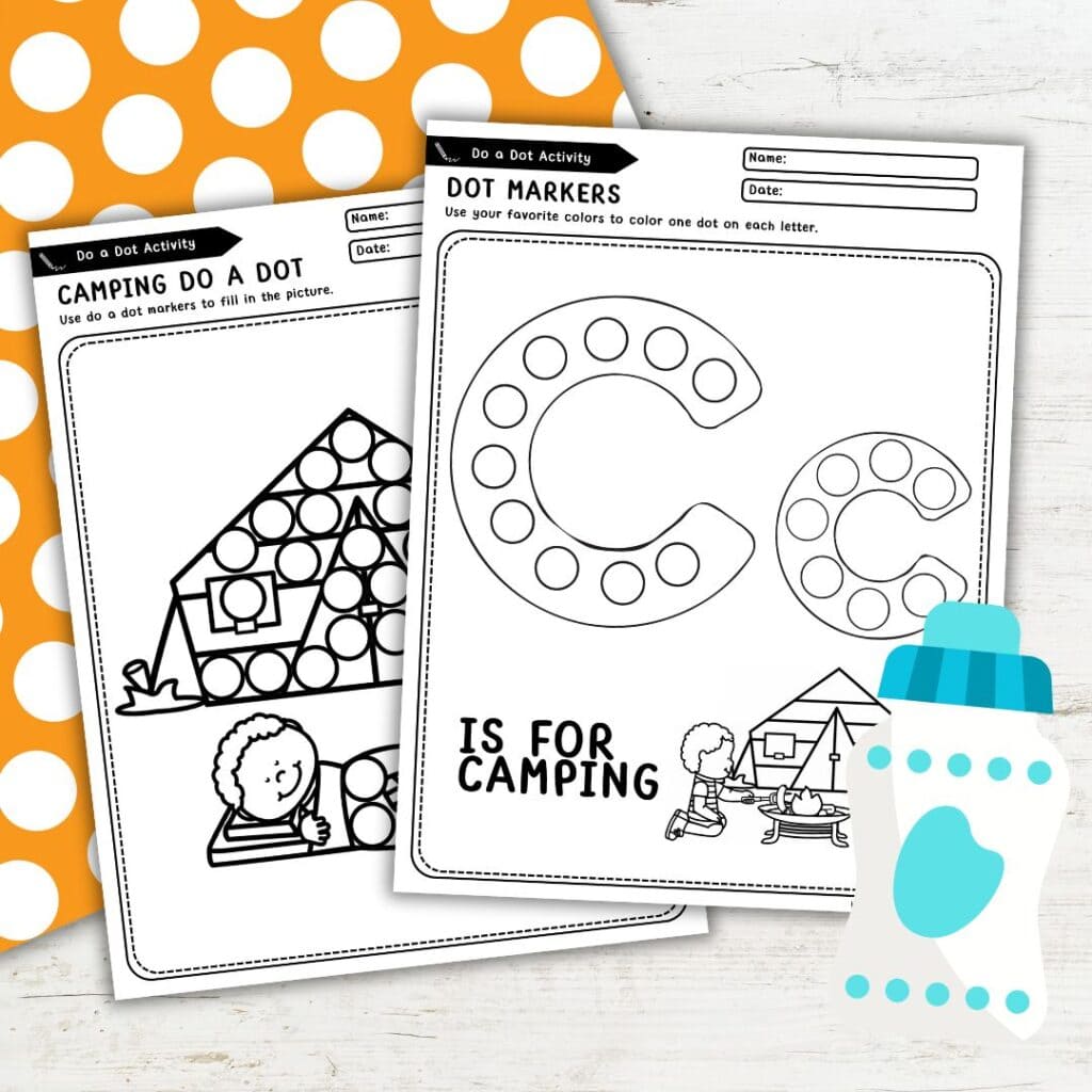 These camping-themed dot marker pages are a great way to sneak in some fun learning. Kids stay engaged, and you get a stress-free activity ready to go!