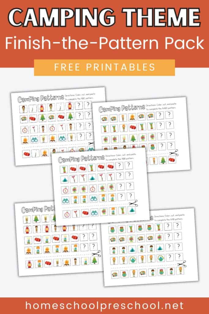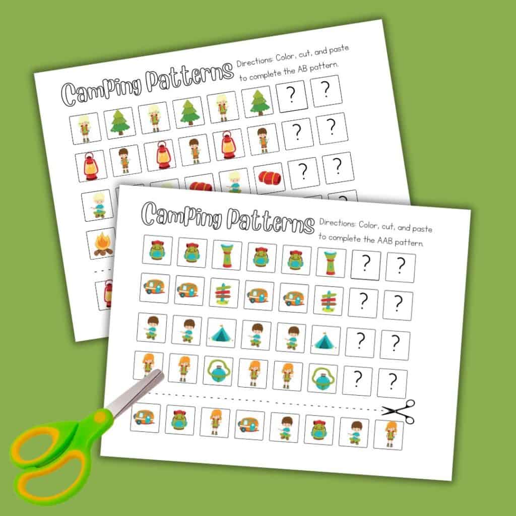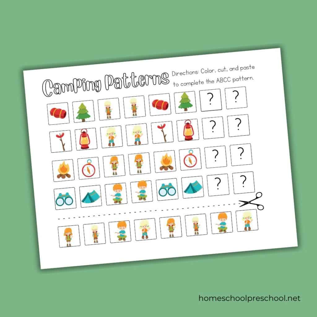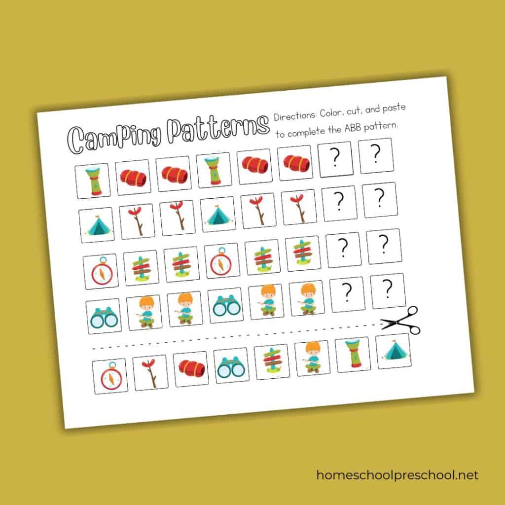 These camping preschool pattern worksheets are perfect for preschoolers aged 3-5.