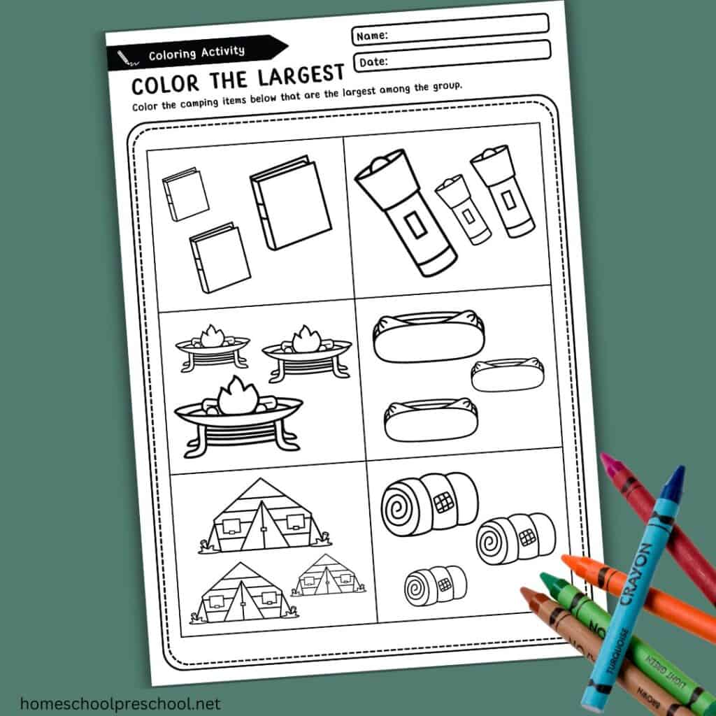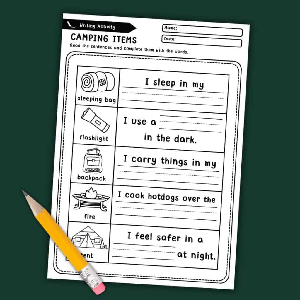 In this set of camping worksheets for preschool, you’ll find: