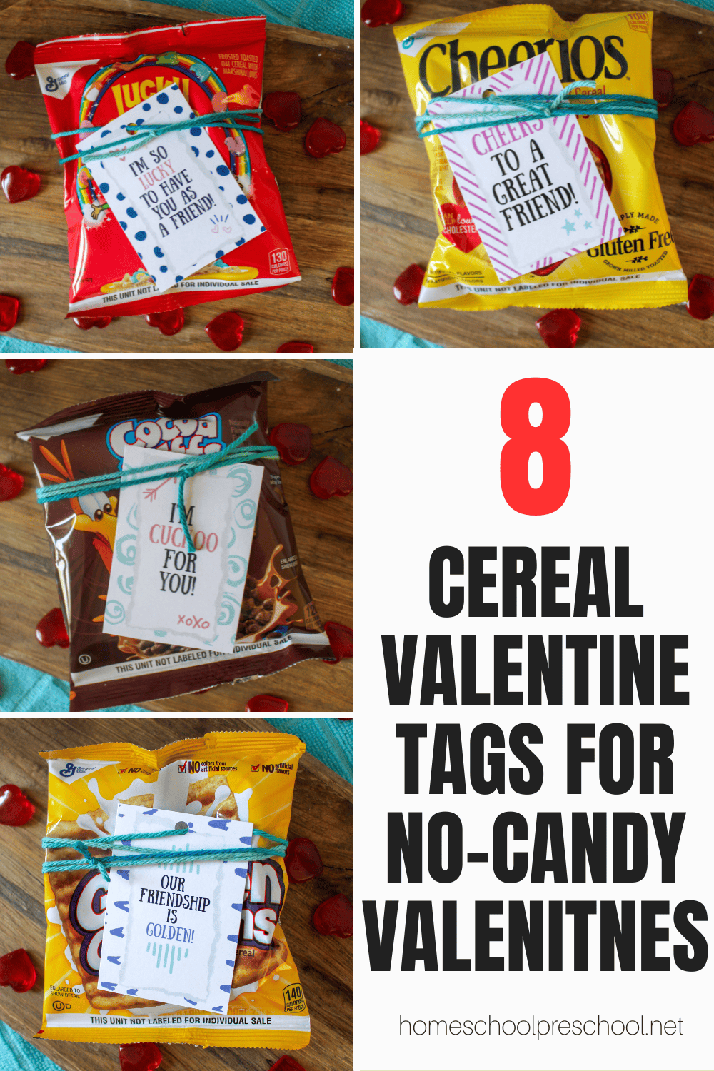 Inside this set of fun Valentines Day card ideas, you’ll find tags for the following cereals: