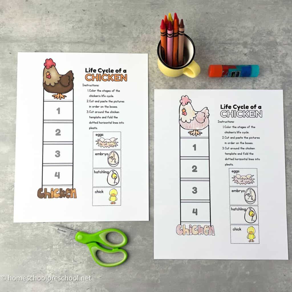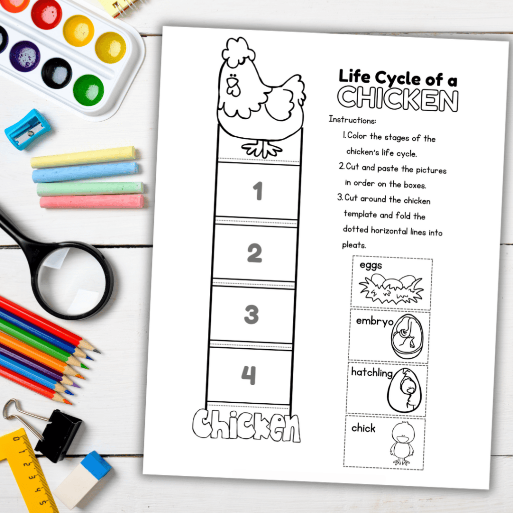 Our free cut and paste chicken life cycle accordion fold craft is an engaging activity that allows children to explore and understand the stages of a chicken’s life cycle in a fun and interactive way.
