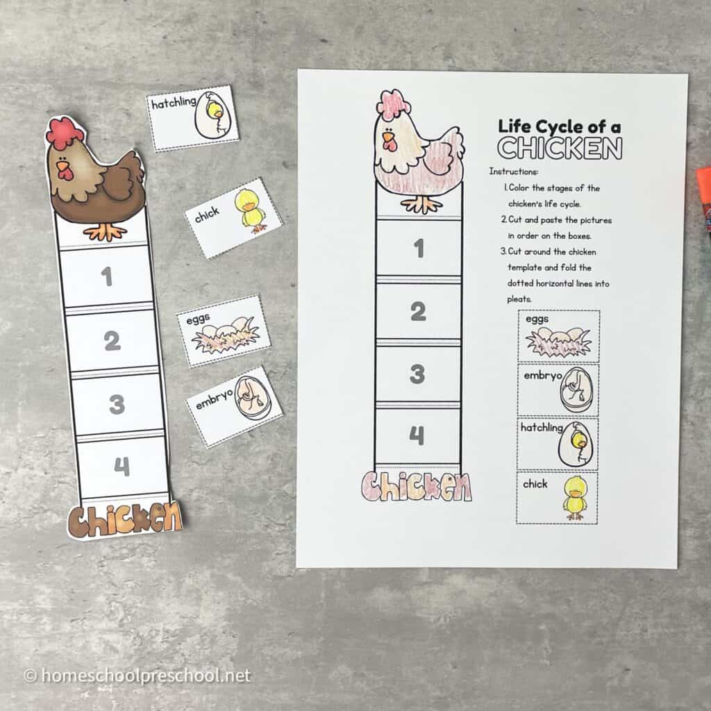 Our new chicken life cycle craft is a fun way to teach preschoolers how chickens change and grow over their lives.