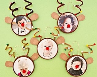 Get younger kids in the holiday spirit with these adorable Rudolph ornaments they can make with their own little hands! Decorate your Christmas tree or give them as gifts.
