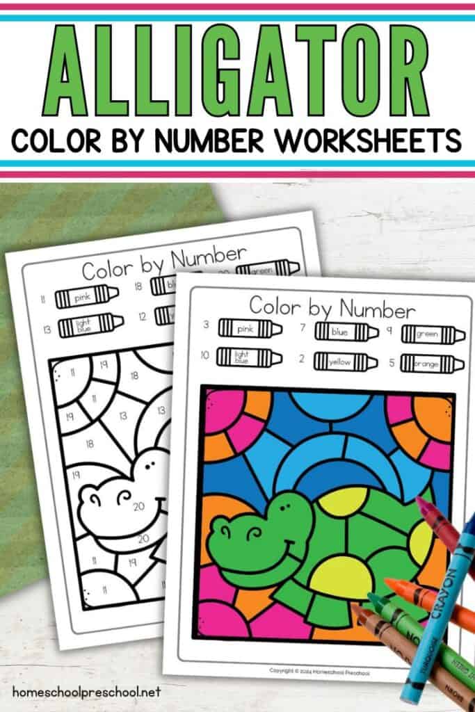 Our color by number alligator printables are a great way to mix creativity with learning for hours of fun!