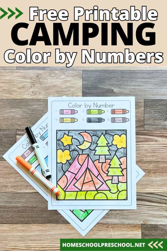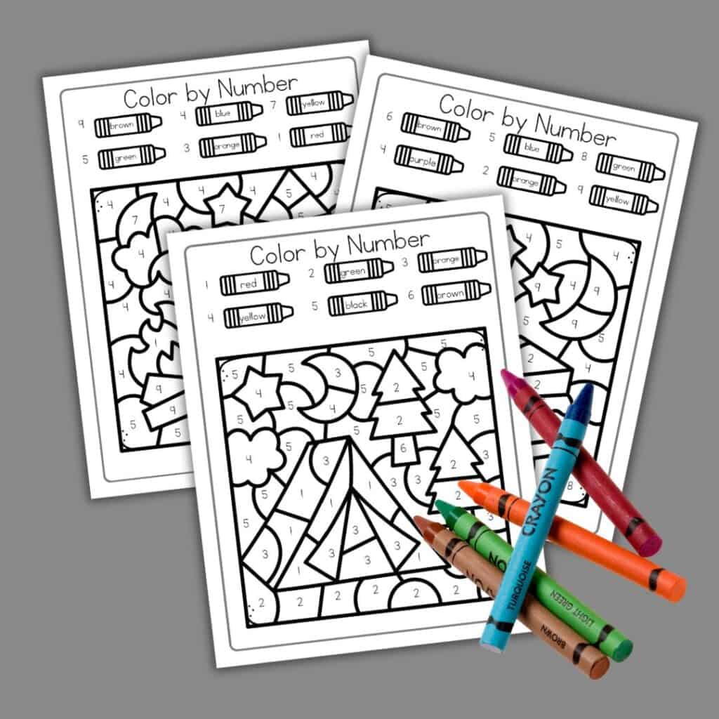 Spruce up your camping theme with our fun color-by-code worksheets! They’re a great way to keep little ones entertained when you need a quiet minute. And don’t forget to check out our camping pretend play printables!