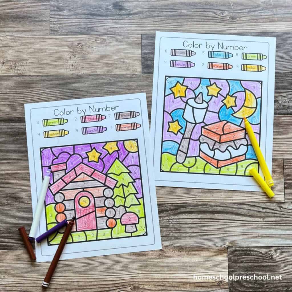 Color by number camping worksheets are activity sheets designed with camping-themed illustrations divided into numbered sections. Each number corresponds to a specific color, allowing children to color the picture correctly by following the color guide. These worksheets are both fun and educational, helping kids develop number recognition, fine motor skills, and color identification.