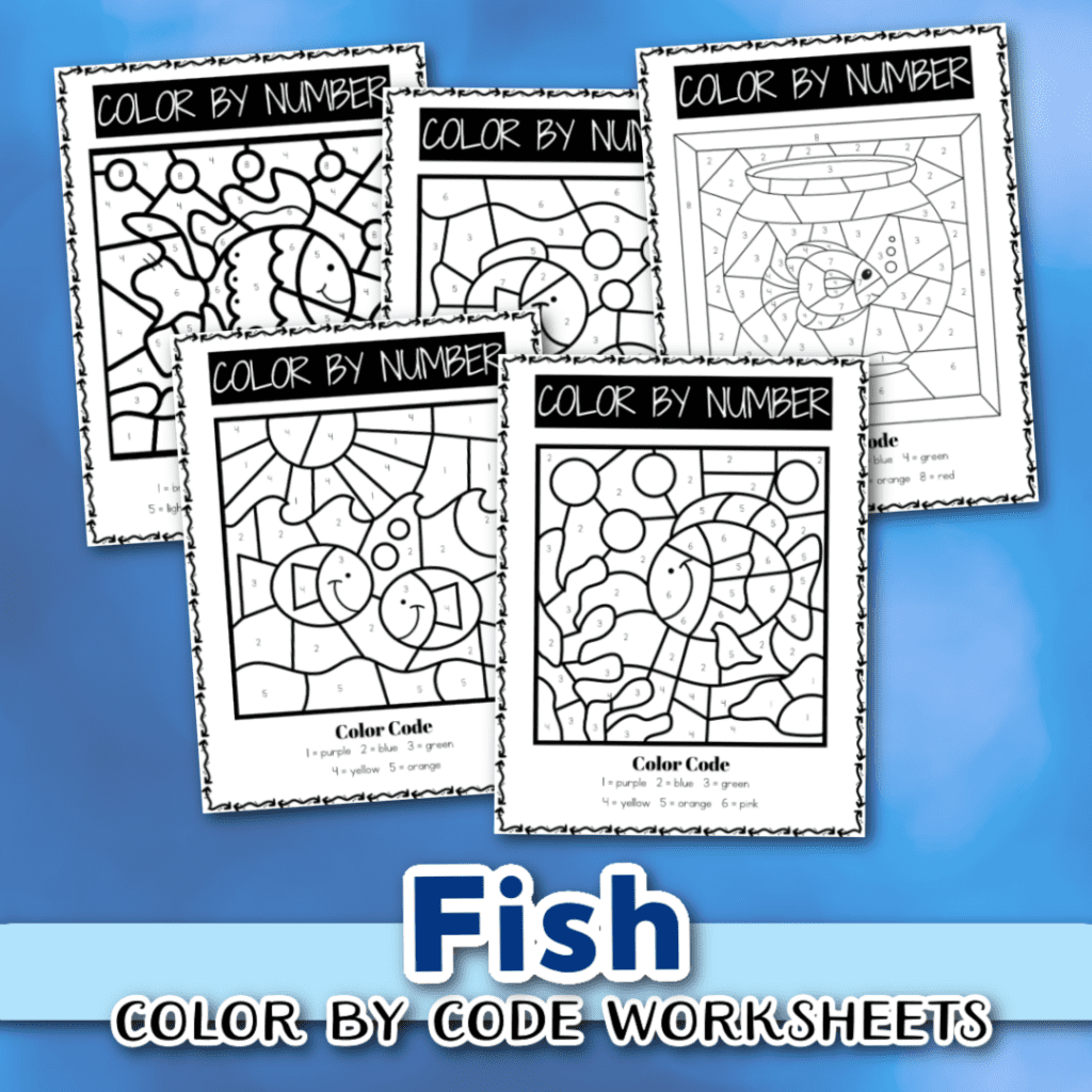 If you’re looking for a fun math activity to add to your F is for Fish, P is for Pet, or O is for Ocean preschool lessons, you don’t want to miss these color by number worksheets.