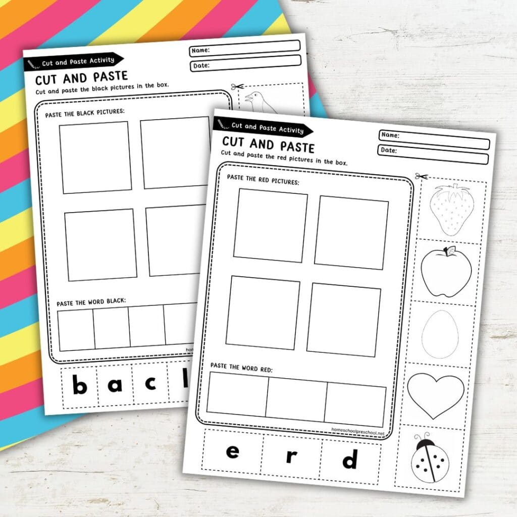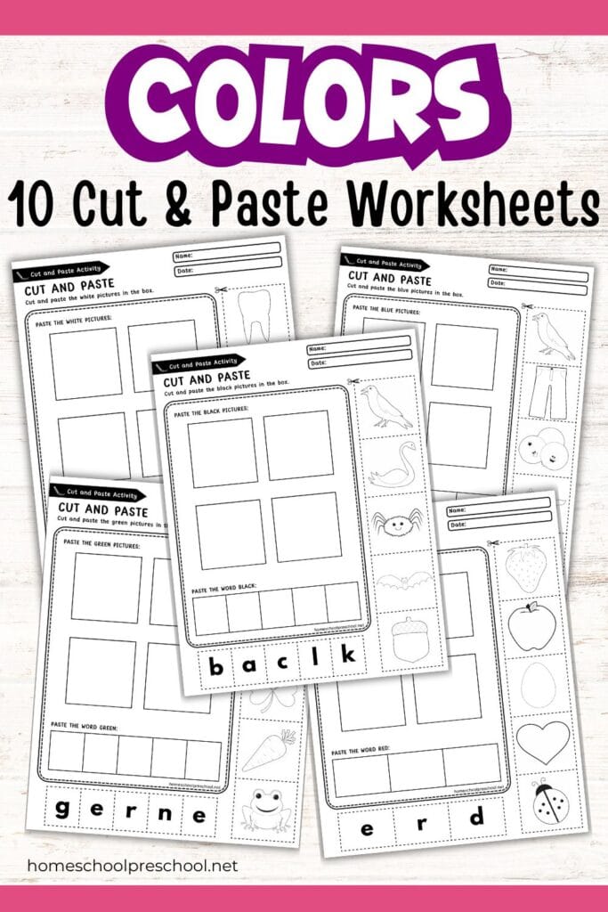 - 10 cut-and-paste worksheets, each focusing on a different color