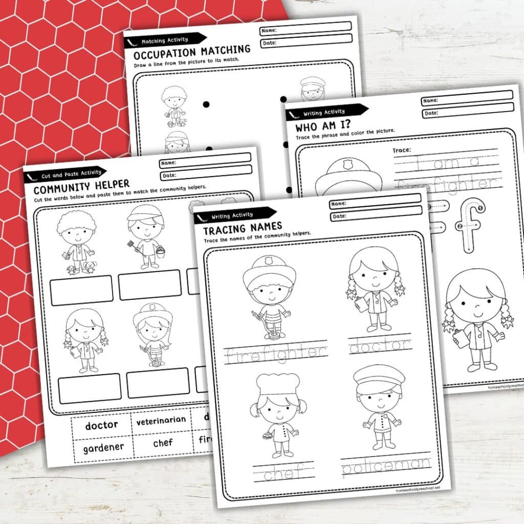If your little ones had fun with these activities, they’ll love exploring even more preschool community helpers printables! There are so many great ways to learn about the people who help our communities through engaging worksheets and activities. Check out the resources below for more printables to keep the learning going!