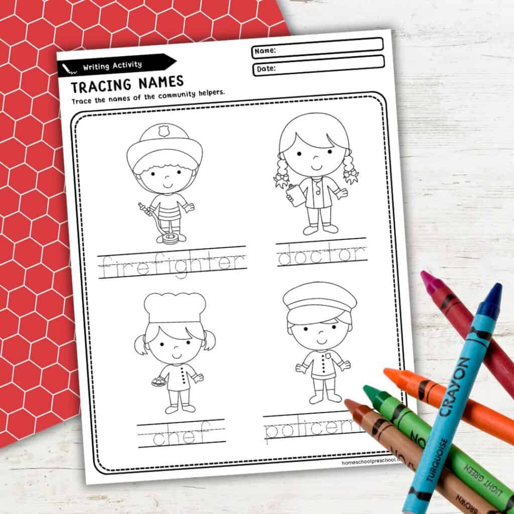 As they trace, kids also strengthen fine motor skills and build confidence in their writing. Plus, they’ll love coloring the pictures of community helpers once their work is done!