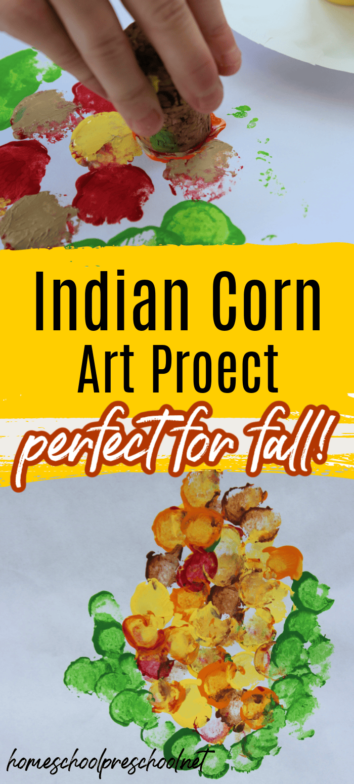 Fall is a great time to do arts and crafts projects with your kids! This Indian corn art project is easy and can be made with paint and a wine cork. It’s perfect for preschoolers and makes a great fall craft.